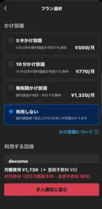 わたしはほぼ電話しないので[利用しない]を選択しました。