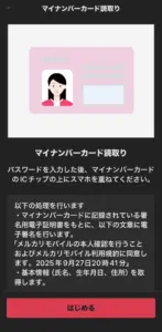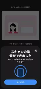 マイナンバーカードをスマホの上部背面にかざしてスキャンします。