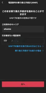 MNPをする場合は引き継ぐために利用中の携帯番号を入力します。