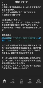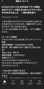今回の9月のキャンペーン特典としてメルカリの90%オフクーポンが直後に付与されます。